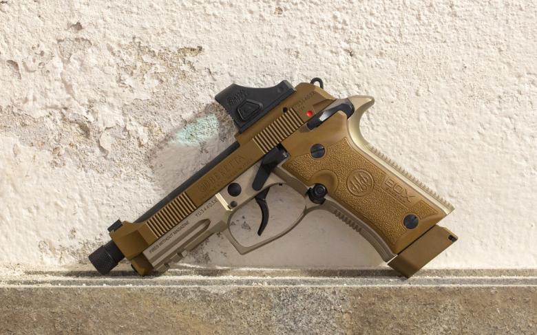 Beretta décline son 80X Cheetah dans une version Tactical FDE : canon fileté 1/2×28, capacité portée à 15+1 coups, glissière Desert Cerakote et carcasse anodisée bronze. Toujours RDO-ready pour monter un point rouge et en détente SA/DA, ce pistolet reprend les codes de la série 90 M9A3 pour conjuguer style italien et exigences tactiques.