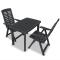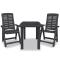 bistro 3 pcs Plastique AnthraciteCet ensemble de bistro résistant aux intempéries sera un excellent choix pour manger en plein air dans le jardin, sur le patio ou au camping. La table de jardin dispose d'un trou pour parasol donc vous pouvez l'utiliser avec un parasol et garder la fraîcheur à l'ombre. Les dossiers des chaises ont 4 positions d'inclinaison, donc vous pouvez toujours trouver la position la plus confortable. Les chaises peuvent être pliées pour économiser de l'espace lorsqu'elles ne sont pas utilisées. L'ensemble est fait de plastique durable, rendant la table et les chaises résistantes aux intempéries et faciles à nettoyer. Cet ensemble de salle à manger d'extérieur est également léger, ce qui le rend facile à déplacer. La livraison comprend 1 table et 2 chaises pliantes. Maximum 110 kg par siège.