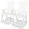 bistro 3 pcs Plastique BlancCet ensemble de bistro résistant aux intempéries sera un excellent choix pour manger en plein air dans le jardin, sur le patio ou au camping. La table de jardin dispose d'un trou pour parasol donc vous pouvez l'utiliser avec un parasol et garder la fraîcheur à l'ombre. Les dossiers des chaises ont 4 positions d'inclinaison, donc vous pouvez toujours trouver la position la plus confortable. Les chaises peuvent être pliées pour économiser de l'espace lorsqu'elles ne sont pas utilisées. L'ensemble est fait de plastique durable, rendant la table et les chaises résistantes aux intempéries et faciles à nettoyer. Cet ensemble de salle à manger d'extérieur est également léger, ce qui le rend facile à déplacer. La livraison comprend 1 table et 2 chaises pliantes. Maximum 110 kg par siège.