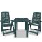 bistro 3 pcs Plastique VertCet ensemble de bistro résistant aux intempéries sera un excellent choix pour manger en plein air dans le jardin, sur le patio ou au camping. La table de jardin dispose d'un trou pour parasol donc vous pouvez l'utiliser avec un parasol et garder la fraîcheur à l'ombre. Les dossiers des chaises ont 4 positions d'inclinaison, donc vous pouvez toujours trouver la position la plus confortable. Les chaises peuvent être pliées pour économiser de l'espace lorsqu'elles ne sont pas utilisées. L'ensemble est fait de plastique durable, rendant la table et les chaises résistantes aux intempéries et faciles à nettoyer. Cet ensemble de salle à manger d'extérieur est également léger, ce qui le rend facile à déplacer. La livraison comprend 1 table et 2 chaises pliantes. Maximum 110 kg par siège.