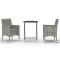 bistro 3 pcs Résine tressée et verre trempé GrisUn jardin monotone ? Égayez-le avec notre ensemble de bistro de jardin de 3 pièces et rendez l'extérieur de votre maison tout aussi accueillant que l'intérieur ! Il est idéal pour le petit balcon, la terrasse, la cour arrière, la véranda et tout autre espace extérieur. Dotées d'un cadre en acier enduit de poudre recouvert de résine tressée résistante aux intempéries avec protection UV, la table et les chaises sont durables et stables. Les chaises sont conçues dans une forme plus ergonomique pour un confort maximum. Des coussins sont inclus pour plus de soutien. Le dessus de table est fabriqué en verre trempé renforcé avec support fort, facile à nettoyer et à entretenir. Lorsqu'elle n'est pas utilisée, la table d'extérieur peut être facilement repliée pour économiser de l'espace. Maximum 110 kg par siège. Soyez conscient du risque de feu ouvert et d'autres sources de forte chaleur à proximité de l'appareil.