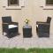 bistro 3 pcs Résine tressée et verre trempé NoirÉgayez votre cour arrière avec cet ensemble de bistro de 3 pièces et rendez l'extérieur de votre maison tout aussi accueillant que l'intérieur ! Il est idéal pour le petit balcon, la terrasse, la cour arrière, la véranda et tout autre espace extérieur ! Dotées d'un cadre en acier enduit de poudre recouvert de résine tressée résistante aux intempéries avec protection UV, la table et les chaises garantissent des années d'utilisation en plein air. Les chaises sont conçues dans une forme plus ergonomique pour un confort maximum. Des coussins sont inclus pour plus de soutien. Le dessus de table est en verre trempé renforcé avec support fort, facile à nettoyer et à entretenir. Maximum 110 kg par siège. Soyez conscient du risque de feu ouvert et d'autres sources de forte chaleur à proximité de l'appareil.