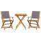 bistro 3 pcs anthracite tissu et bois massifSavourez une tasse de café ou discutez avec votre famille et vos amis dans le jardin, l'arrière-cour ou sur le balcon avec cet ensemble de bistro ! Robuste et stable : le bois d'acacia massif est connu pour sa solidité et sa durabilité. Ses couleurs variées et ses grains uniques lui confèrent un aspect attrayant. Sa stabilité et sa résistance aux intempéries en font un matériau idéal pour la fabrication de meubles d'intérieur et d'extérieur.Conception pratique : la main courante en bois, pratique et plate, vous permet de poser vos mains dessus tout en profitant d'un moment en plein air.Dessus de table robuste : la table d'extérieur offre un excellent support pour accueillir vos boissons, collations, corbeilles de fruits et vos décorations préférées.Design pliable : la table et les chaises de salle à manger d'extérieur peuvent être facilement repliées lorsqu'elles ne sont pas utilisées pour faciliter le rangement et le transport. Bon à savoir :Pour que vos meubles d'extérieur restent beaux, nous vous recommandons de les protéger avec une housse imperméable. Maximum 110 kg par siège.