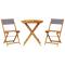 bistro 3 pcs anthracite tissu et bois massifSavourez une tasse de café ou discutez avec votre famille et vos amis dans le jardin, l'arrière-cour ou sur le balcon avec cet ensemble de bistro ! Robuste et stable : le bois d'acacia massif est connu pour sa solidité et sa durabilité. Ses couleurs variées et ses grains uniques lui confèrent un aspect attrayant. Sa stabilité et sa résistance aux intempéries en font un matériau idéal pour la fabrication de meubles d'intérieur et d'extérieur.Conception pratique : la chaise d'extérieur ne comporte pas d'accoudoir, mais uniquement un dossier, ce qui vous permet d'être plus libre de vos mouvements tout en bénéficiant d'un grand confort.Dessus de table robuste : la table d'extérieur offre un excellent support pour accueillir vos boissons, collations, corbeilles de fruits et vos décorations préférées.Design pliable : la table et les chaises de salle à manger d'extérieur peuvent être facilement repliées lorsqu'elles ne sont pas utilisées pour faciliter le rangement et le transport. Bon à savoir :Pour que vos meubles d'extérieur restent beaux, nous vous recommandons de les protéger avec une housse imperméable. Maximum 110 kg par siège.