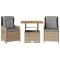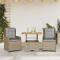 bistro 3 pcs avec coussins beige résine tresséeSavourez un café ou discutez avec votre famille et vos amis dans le jardin, l'arrière-cour ou sur le balcon avec cet ensemble de bistro confortable ! Matériau durable : la résine tressée, également connue sous le nom de poly rotin, est un matériau synthétique solide et nécessitant peu d'entretien qui ressemble au rotin naturel. Il est léger, facile à nettoyer et couramment utilisé pour les meubles d'extérieur en raison de sa durabilité et de ses propriétés de résistance aux intempéries.Dossier réglable : ce siège de jardin est doté d'une poignée. Vous pouvez régler le dossier dans n'importe quelle position en tirant sur la poignée et le remettre rapidement dans sa position initiale.Housse amovible et lavable : le coussin de siège est doté d'une housse amovible pour un lavage et un entretien faciles.Dessus de table réglable : le dessus de table peut être soulevé pour rendre la table plus haute, ce qui transforme la table d'extérieur d'une table basse à une table de salle à manger. Elle est parfaite pour recevoir des invités ou prendre des repas à l'extérieur.Dessus stable et facile à nettoyer : cette table de jardin a un dessus en bois d'acacia robuste, durable et facile à nettoyer avec un chiffon humide. Bon à savoir :Pour que vos meubles d'extérieur restent beaux, nous vous recommandons de les protéger avec une housse imperméable. Maximum 110 kg par siège. Soyez conscient du risque de feu ouvert et d'autres sources de forte chaleur à proximité de l'appareil.