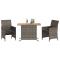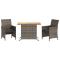 bistro 3 pcs avec coussins gris résine tresséeSavourez une tasse de café ou discutez avec votre famille et vos amis dans le jardin, l'arrière-cour ou sur le balcon avec cet ensemble de bistro confortable ! Matériau durable : la résine tressée, également connue sous le nom de poly rotin, est un matériau synthétique solide et nécessitant peu d'entretien qui ressemble au rotin naturel. Il est léger, facile à nettoyer et couramment utilisé pour les meubles d'extérieur en raison de sa durabilité et de ses propriétés de résistance aux intempéries.Expérience d'assise confortable : ce mobilier d'extérieur, doté de coussins épais, offre une expérience d'assise confortable.Housse amovible et lavable : ces coussins de siège sont dotés de housses amovibles pour un lavage et un entretien faciles.Rangement compact : ces chaises de jardin peuvent être soigneusement rangés sous la table, ce qui permet d'économiser de l'espace.Dessus stable et facile à nettoyer : cette table de jardin a un dessus en bois d'acacia robuste, durable et facile à nettoyer avec un chiffon humide. Bon à savoir :Pour que vos meubles d'extérieur restent beaux, nous vous recommandons de les protéger avec une housse imperméable. Maximum 110 kg par siège. Soyez conscient du risque de feux ouverts et d'autres sources de forte chaleur à proximité du produit.