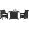 bistro 3 pcs avec coussins noir résine tresséeSavourez une tasse de café ou discutez avec votre famille et vos amis dans le jardin, l'arrière-cour ou sur le balcon avec cet ensemble de bistro confortable ! Matériau durable : la résine tressée, également connue sous le nom de poly rotin, est un matériau synthétique solide et nécessitant peu d'entretien qui ressemble au rotin naturel. Il est léger, facile à nettoyer et couramment utilisé pour les meubles d'extérieur en raison de sa durabilité et de ses propriétés de résistance aux intempéries.Expérience d'assise confortable : ce mobilier d'extérieur, doté de coussins épais, offre une expérience d'assise confortable.Housse amovible et lavable : ces coussins de siège sont dotés de housses amovibles pour un lavage et un entretien faciles.Rangement compact : ces chaises de jardin peuvent être soigneusement rangés sous la table, ce qui permet d'économiser de l'espace.Dessus en verre : le dessus de la table d'extérieur est fabriqué en verre trempé solide et durable, ce qui le rend facile à nettoyer avec un chiffon humide et ajoute une touche d'élégance à votre espace extérieur. Bon à savoir :Pour que vos meubles d'extérieur restent beaux, nous vous recommandons de les protéger avec une housse imperméable. Maximum 110 kg par siège. Soyez conscient du risque de feux ouverts et d'autres sources de forte chaleur à proximité du produit.