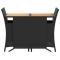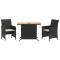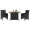 bistro 3 pcs avec coussins noir résine tresséeSavourez une tasse de café ou discutez avec votre famille et vos amis dans le jardin, l'arrière-cour ou sur le balcon avec cet ensemble de bistro confortable ! Matériau durable : la résine tressée, également connue sous le nom de poly rotin, est un matériau synthétique solide et nécessitant peu d'entretien qui ressemble au rotin naturel. Il est léger, facile à nettoyer et couramment utilisé pour les meubles d'extérieur en raison de sa durabilité et de ses propriétés de résistance aux intempéries.Expérience d'assise confortable : ce mobilier d'extérieur, doté de coussins épais, offre une expérience d'assise confortable.Housse amovible et lavable : ces coussins de siège sont dotés de housses amovibles pour un lavage et un entretien faciles.Rangement compact : ces chaises de jardin peuvent être soigneusement rangés sous la table, ce qui permet d'économiser de l'espace.Dessus stable et facile à nettoyer : cette table de jardin a un dessus en bois d'acacia robuste, durable et facile à nettoyer avec un chiffon humide. Bon à savoir :Pour que vos meubles d'extérieur restent beaux, nous vous recommandons de les protéger avec une housse imperméable. Maximum 110 kg par siège. Soyez conscient du risque de feux ouverts et d'autres sources de forte chaleur à proximité du produit.