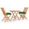 bistro 3 pcs avec coussins vert Bois de teck massifCet ensemble de bistro en bois fait le point de mire de votre jardin, terrasse, patio ou salle à manger. Fabriquée en bois dur de teck extrêmement durable, cette pièce de meuble en teck a été chevronnée, séchée au four puis finement poncée pour lui donner un aspect très lisse. Le bois de teck est connu pour sa résistance exceptionnelle aux intempéries, ce qui le rend bien plus adapté aux meubles de jardin que tout autre type de bois. Le bois de teck est le choix idéal si vous souhaitez acheter une pièce de meubles de jardin durable. La surface sablée est facile à entretenir et donne à l'ensemble un aspect raffiné. La table et les chaises de bistro peuvent être pliées pour économiser de l'espace lorsqu'elles ne sont pas utilisées. Les coussins de siège bien rembourrés ajoutent également un confort supplémentaire.