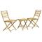 bistro 3 pcs bambouSavourez une tasse de café ou discutez avec votre famille et vos amis dans le jardin, l'arrière-cour ou sur le balcon avec cet ensemble de bistro ! Durable : en tant que matériau naturel, le bambou offre une bonne respirabilité et une faible odeur. Ces qualités rendent l'ensemble de bistro de jardin durable, résistant à l'eau et de longue durée.Design pliable : l'ensemble de bistro d'extérieur peut être facilement plié lorsqu'il n'est pas utilisé pour faciliter le rangement et le transport.Dessus stable : le dessus stable de la table de jardin est idéal pour placer votre boisson ou toute autre nécessité dont vous avez besoin à portée de main.Une expérience d'assise confortable : dotée d'un dossier, la chaise d'extérieur vous offre un confort optimal. Bon à savoir :Pour que vos meubles d'extérieur restent beaux, nous vous recommandons de les protéger avec une housse imperméable. Maximum 110 kg par siège.