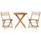 bistro 3 pcs beige tissu et bois massifSavourez une tasse de café ou discutez avec votre famille et vos amis dans le jardin, l'arrière-cour ou sur le balcon avec cet ensemble de bistro ! Robuste et stable : le bois d'acacia massif est connu pour sa solidité et sa durabilité. Ses couleurs variées et ses grains uniques lui confèrent un aspect attrayant. Sa stabilité et sa résistance aux intempéries en font un matériau idéal pour la fabrication de meubles d'intérieur et d'extérieur.Conception pratique : la chaise d'extérieur ne comporte pas d'accoudoir, mais uniquement un dossier, ce qui vous permet d'être plus libre de vos mouvements tout en bénéficiant d'un grand confort.Dessus de table robuste : la table d'extérieur offre un excellent support pour accueillir vos boissons, collations, corbeilles de fruits et vos décorations préférées.Design pliable : la table et les chaises de salle à manger d'extérieur peuvent être facilement repliées lorsqu'elles ne sont pas utilisées pour faciliter le rangement et le transport. Bon à savoir :Pour que vos meubles d'extérieur restent beaux, nous vous recommandons de les protéger avec une housse imperméable. Maximum 110 kg par siège.