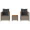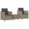 bistro 3 pcs et coussins gris résine tressée acaciaSavourez un café ou discutez avec votre famille et vos amis dans le jardin, l'arrière-cour ou sur le balcon avec cet ensemble de bistro confortable ! Matériau durable : la résine tressée, également connue sous le nom de poly rotin, est un matériau synthétique solide et nécessitant peu d'entretien qui ressemble au rotin naturel. Il est léger, facile à nettoyer et couramment utilisé pour les meubles d'extérieur en raison de sa durabilité et de ses propriétés de résistance aux intempéries.Expérience d'assise confortable : ce mobilier d'extérieur, doté de coussins épais, offre une expérience d'assise confortable.Housse amovible et lavable : ces coussins de siège sont dotés de housses amovibles pour un lavage et un entretien faciles.Dessus stable et facile à nettoyer : cette table de jardin a un dessus en bois d'acacia robuste, durable et facile à nettoyer avec un chiffon humide.Cadre robuste et stable : le cadre en acier enduit de poudre assure la solidité et la stabilité du meuble de jardin pour une utilisation quotidienne à l'extérieur. Bon à savoir :Pour que vos meubles d'extérieur restent beaux, nous vous recommandons de les protéger avec une housse imperméable. Maximum 110 kg par siège. Soyez conscient du risque de feux ouverts et d'autres sources de forte chaleur à proximité du produit.