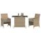 bistro 3 pcs coussins mélange beige résine tresséeSavourez une tasse de café ou discutez avec votre famille et vos amis dans le jardin, l'arrière-cour ou sur le balcon avec cet ensemble de bistro confortable ! Matériau durable : la résine tressée, également connue sous le nom de poly rotin, est un matériau synthétique solide et nécessitant peu d'entretien qui ressemble au rotin naturel. Il est léger, facile à nettoyer et couramment utilisé pour les meubles d'extérieur en raison de sa durabilité et de ses propriétés de résistance aux intempéries.Expérience d'assise confortable : ce mobilier d'extérieur, doté de coussins épais, offre une expérience d'assise confortable.Housse amovible et lavable : ces coussins de siège sont dotés de housses amovibles pour un lavage et un entretien faciles.Rangement compact : ces chaises de jardin peuvent être soigneusement rangés sous la table, ce qui permet d'économiser de l'espace.Dessus en verre : le dessus de la table d'extérieur est fabriqué en verre trempé solide et durable, ce qui le rend facile à nettoyer avec un chiffon humide et ajoute une touche d'élégance à votre espace extérieur. Bon à savoir :Pour que vos meubles d'extérieur restent beaux, nous vous recommandons de les protéger avec une housse imperméable. Maximum 110 kg par siège. Soyez conscient du risque de feux ouverts et d'autres sources de forte chaleur à proximité du produit.