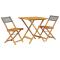 bistro 3 pcs gris résine tressée et bois massifSavourez une tasse de café ou discutez avec votre famille et vos amis dans le jardin, l'arrière-cour ou sur le balcon avec cet ensemble de bistro ! Robuste et stable : le bois d'acacia massif est connu pour sa solidité et sa durabilité. Ses couleurs variées et ses grains uniques lui confèrent un aspect attrayant. Sa stabilité et sa résistance aux intempéries en font un matériau idéal pour la fabrication de meubles d'intérieur et d'extérieur.Matériau durable : la résine tressée, également connue sous le nom de poly rotin, est un matériau synthétique solide et nécessitant peu d'entretien qui ressemble au rotin naturel. Il est léger, facile à nettoyer et couramment utilisé pour les meubles d'extérieur en raison de sa durabilité et de ses propriétés de résistance aux intempéries.Conception pratique : la chaise d'extérieur ne comporte pas d'accoudoir, mais uniquement un dossier, ce qui vous permet d'être plus libre de vos mouvements tout en bénéficiant d'un grand confort.Dessus de table robuste : la table d'extérieur offre un excellent support pour accueillir vos boissons, collations, corbeilles de fruits et vos décorations préférées.Design pliable : la table et les chaises de salle à manger d'extérieur peuvent être facilement repliées lorsqu'elles ne sont pas utilisées pour faciliter le rangement et le transport. Bon à savoir :Pour que vos meubles d'extérieur restent beaux, nous vous recommandons de les protéger avec une housse imperméable. Maximum 110 kg par siège.