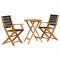 bistro 3 pcs noir polypropylène et bois massifSavourez une tasse de café ou discutez avec votre famille et vos amis dans le jardin, l'arrière-cour ou sur le balcon avec cet ensemble de bistro ! Robuste et stable : le bois d'acacia massif est connu pour sa solidité et sa durabilité. Ses couleurs variées et ses grains uniques lui confèrent un aspect attrayant. Sa stabilité et sa résistance aux intempéries en font un matériau idéal pour la fabrication de meubles d'intérieur et d'extérieur.Conception pratique : la main courante en bois, pratique et plate, vous permet de poser vos mains dessus tout en profitant d'un moment en plein air.Dessus de table robuste : la table d'extérieur offre un excellent support pour accueillir vos boissons, collations, corbeilles de fruits et vos décorations préférées.Design pliable : la table et les chaises de salle à manger d'extérieur peuvent être facilement repliées lorsqu'elles ne sont pas utilisées pour faciliter le rangement et le transport. Bon à savoir :Pour que vos meubles d'extérieur restent beaux, nous vous recommandons de les protéger avec une housse imperméable. Maximum 110 kg par siège.