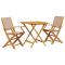 bistro 3 pcs taupe tissu et bois massifSavourez une tasse de café ou discutez avec votre famille et vos amis dans le jardin, l'arrière-cour ou sur le balcon avec cet ensemble de bistro ! Robuste et stable : le bois d'acacia massif est connu pour sa solidité et sa durabilité. Ses couleurs variées et ses grains uniques lui confèrent un aspect attrayant. Sa stabilité et sa résistance aux intempéries en font un matériau idéal pour la fabrication de meubles d'intérieur et d'extérieur.Conception pratique : la main courante en bois, pratique et plate, vous permet de poser vos mains dessus tout en profitant d'un moment en plein air.Dessus de table robuste : la table d'extérieur offre un excellent support pour accueillir vos boissons, collations, corbeilles de fruits et vos décorations préférées.Design pliable : la table et les chaises de salle à manger d'extérieur peuvent être facilement repliées lorsqu'elles ne sont pas utilisées pour faciliter le rangement et le transport. Bon à savoir :Pour que vos meubles d'extérieur restent beaux, nous vous recommandons de les protéger avec une housse imperméable. Maximum 110 kg par siège.
