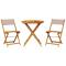 bistro 3 pcs taupe tissu et bois massifSavourez une tasse de café ou discutez avec votre famille et vos amis dans le jardin, l'arrière-cour ou sur le balcon avec cet ensemble de bistro ! Robuste et stable : le bois d'acacia massif est connu pour sa solidité et sa durabilité. Ses couleurs variées et ses grains uniques lui confèrent un aspect attrayant. Sa stabilité et sa résistance aux intempéries en font un matériau idéal pour la fabrication de meubles d'intérieur et d'extérieur.Conception pratique : la chaise d'extérieur ne comporte pas d'accoudoir, mais uniquement un dossier, ce qui vous permet d'être plus libre de vos mouvements tout en bénéficiant d'un grand confort.Dessus de table robuste : la table d'extérieur offre un excellent support pour accueillir vos boissons, collations, corbeilles de fruits et vos décorations préférées.Design pliable : la table et les chaises de salle à manger d'extérieur peuvent être facilement repliées lorsqu'elles ne sont pas utilisées pour faciliter le rangement et le transport. Bon à savoir :Pour que vos meubles d'extérieur restent beaux, nous vous recommandons de les protéger avec une housse imperméable. Maximum 110 kg par siège.