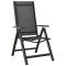 bistro 5 pcs noir et anthraciteCet ensemble de bistro au design élégant et intemporel offre un coin salon confortable dans le jardin ou sur le patio. Le cadre en aluminium enduit de poudre rend les fauteuils très robustes et durables. Les chaises de jardin ont un dessus en textilène doux au toucher et résistant aux intempéries et peuvent être réglées en 7 positions, de sorte que vous puissiez toujours trouver la position assise la plus confortable. Fabriquée en acier et en verre, la table est bien conçue et est idéale pour placer des aliments, des boissons ou même des plantes en pot. En outre, elle est également facile à nettoyer avec un chiffon humide. Remarque : afin de prolonger la durée de vie des meubles d'extérieur, nous vous recommandons de les protéger avec une housse imperméable. Maximum 110 kg par siège.