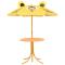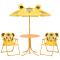 bistro avec parasol pour enfants 3 pcs JauneCet ensemble de mobilier de jardin avec une table, deux chaises et un parasol est spécialement conçu pour que vos enfants puissent s'amuser dans le jardin ou sur la terrasse. Avec un cadre en acier robuste, cet ensemble de mobilier de jardin est résistant et robuste et fera un coin salon sécurisé pour vos enfants. Le parasol inclus protège vos petits contre le soleil. De plus, les chaises peuvent être pliées pour économiser de l'espace de stockage lorsqu'elles ne sont pas utilisées. Cet ensemble est facile à assembler. Attention Petites pièces. Risque d>étouffement. Tenir loin du feu. 30 kg de poids maximal de l>utilisateur. Avertissement. Ne convient pas aux enfants de moins de 3 ans. Petits éléments présents. Risque d'étouffement. GPSR