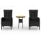 bistro de jardin 3 pcs Résine tressée NoirCet élégant ensemble de bistro de jardin en résine tressée est conçu pour être le point de mire de votre jardin ou de votre patio. C'est un excellent choix pour les repas en plein air ou pour vous détendre dans l'espace extérieur ! Matériau de qualité supérieure : cadre en acier robuste enveloppé de résine tressée tissée à la main résistante aux intempéries, cet ensemble de patio d'extérieur est résistant à la rouille et à la moisissure, ce qui peut fournir des années de détente de qualité.Structure stable et solide : les cadres en acier garantissent la solidité et la stabilité.Chaises confortables : conçue avec un dossier et des accoudoirs incurvés, la chaise inclinable de jardin a une forme plus ergonomique pour un confort maximal. Des coussins sont inclus pour un soutien supplémentaire et la housse avec fermeture éclair est amovible pour un lavage facile.Mécanisme de levage à gaz : grâce au mécanisme de levage à gaz, le dossier du fauteuil de jardin est réglable pour s'adapter à vos positions. En touchant le bouton sur le côté, le dossier peut s'incliner, pour une position confortable.Construction légère : grâce à la construction légère, la table de bistrot et les chaises en résine tressée sont faciles à déplacer. Remarque :Afin de prolonger la durée de vie de votre mobilier d'extérieur, nous vous recommandons de le protéger avec une housse imperméable. Maximum 110 kg par siège. Soyez conscient du risque de feu ouvert et d'autres sources de forte chaleur à proximité de l'appareil.
