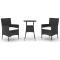 bistro de jardin 3 pcs coussins noir poly rotinCet ensemble élégant de bistro de jardin vous permet de passer des moments agréables et confortables avec votre famille et vos amis. Matériau durable : la résine tressée, également connue sous le nom de rotin poly, résiste aux intempéries et est facile à nettoyer. Elle reste belle à l'extérieur pendant une longue période. Elle offre une excellente qualité, commodité et un aspect esthétique. Cadre robuste et stable : le cadre en acier enduit de poudre de l'ensemble de meuble de jardin garantit la robustesse et la stabilité. Expérience d'assise confortable : conçues avec des dossiers et des accoudoirs, ces chaises de bistro de jardin offrent un maximum de confort. Les coussins bien rembourrés des chaises de bistro offrent également un confort supplémentaire lors de l'assise. Dessus de table robuste : le dessus de table robuste de la table de bistrot est parfait pour placer du café, des boissons, des vases, des bols de fruits ou d'autres objets décoratifs. Remarque :Pour que vos meubles d'extérieur restent beaux, nous vous recommandons de les protéger avec une housse imperméable. Maximum 110 kg par siège. Soyez conscient du risque de feu ouvert et d'autres sources de forte chaleur à proximité de l'appareil.