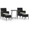 bistro de jardin 5 pcs poly rotin et verre trempéCet ensemble élégant de bistro de jardin vous permet de passer des moments agréables et confortables avec votre famille et vos amis. Avec un cadre en acier enduit de poudre recouvert de résine tressée résistante aux intempéries avec protection UV, la table et les chaises sont durables et stables. Conçues avec un dossier et des accoudoirs incurvés, les chaises vous offrent du confort. Les coussins sont inclus pour plus de confort et la housse à fermeture éclair est amovible pour un lavage facile. Le dessus de table est en verre trempé renforcé avec un support résistant, facile à nettoyer et à entretenir. Les deux repose-pieds vous offrent également des places d'assise supplémentaires. De plus, la construction légère rend chaque pièce facile à déplacer, à réorganiser et à transporter. Remarque : afin de prolonger la durée de vie des meubles d'extérieur, nous vous recommandons de les protéger avec une housse imperméable. Maximum 110 kg par siège. Soyez conscient du risque de feu ouvert et d'autres sources de forte chaleur à proximité de l'appareil.