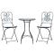 bistro mosaïque bleu et blanc fer et céramiqueSavourez une tasse de café ou discutez avec votre famille et vos amis dans le jardin, l'arrière-cour ou sur le balcon avec cet ensemble de bistrot en mosaïque ! Dessus stable et facile à nettoyer : cette table de jardin a un dessus en céramique robuste, durable et facile à nettoyer avec un chiffon humide.Cadre robuste et stable : le cadre en fer enduit de poudre assure la solidité et la stabilité de la table et des chaises de bistrot pour une utilisation quotidienne à l'intérieur ou à l'extérieur.Design pliable : la chaise à manger de bistro peut également être pliée pour économiser de l'espace lorsqu'elle n'est pas utilisée.Design mosaïque : l'ensemble de balcon contribue à créer une ambiance méditerranéenne dans votre décor intérieur ou extérieur grâce à son design en mosaïque. Bon à savoir :Pour que vos meubles d'extérieur restent beaux, nous vous recommandons de les protéger avec une housse imperméable. Maximum 110 kg par siège.