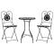bistro mosaïque noir et blanc fer et céramiqueSavourez une tasse de café ou discutez avec votre famille et vos amis dans le jardin, l'arrière-cour ou sur le balcon avec cet ensemble de bistrot en mosaïque ! Dessus stable et facile à nettoyer : cette table de jardin a un dessus en céramique robuste, durable et facile à nettoyer avec un chiffon humide.Cadre robuste et stable : le cadre en fer enduit de poudre assure la solidité et la stabilité de la table et des chaises de bistrot pour une utilisation quotidienne à l'intérieur ou à l'extérieur.Design pliable : la chaise à manger de bistro peut également être pliée pour économiser de l'espace lorsqu'elle n'est pas utilisée.Design mosaïque : l'ensemble de balcon contribue à créer une ambiance méditerranéenne dans votre décor intérieur ou extérieur grâce à son design en mosaïque. Bon à savoir :Pour que vos meubles d'extérieur restent beaux, nous vous recommandons de les protéger avec une housse imperméable. Maximum 110 kg par siège.