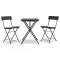 bistro pliable 3 pcs Noir Résine tresséeCet ensemble bistro pliable de 3 pièces en résine tressée est un excellent choix pour manger ou vous détendre dans votre jardin, balcon ou sur patio. Matériau durable : la résine tressée, également connue sous le nom de rotin poly, résiste aux intempéries et est facile à nettoyer. Elle reste belle à l'extérieur pendant une longue période. Elle est plus économique que d'autres matériaux, tout en offrant une excellente qualité, une commodité et un aspect esthétique.Cadre stable : le cadre en acier enduit de poudre assure la robustesse et la stabilité.Design pliable : la table et les chaises peuvent être facilement repliées lorsqu'elles ne sont pas utilisées pour faciliter le rangement et le transport. Remarque :Afin de prolonger la durée de vie de votre mobilier d'extérieur, nous vous recommandons de le protéger avec une housse imperméable.Chaque produit est livré avec un manuel de montage dans la boîte pour un montage facile. Maximum 110 kg par siège.