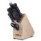 Bloc de couteaux Dick Superior, bois massif, version estampée Contenu : couteau à éplucher, 7 cm couteau d'office, 9 cm désosseur, 13 cm tranchelard, 16 cm Couteau à pain, tranchant ondulé, 21 cm couteau de chef, 21 cm fourchette de chef, 15 cm fusil de chef, 25 cm ciseaux de cuisine Bloc bois massif