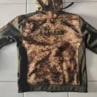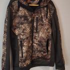 Ce blouson zippé à capuche est bi-colore.Il existe en kaki et camouflage wetland comme sur la photo mais aussi en kaki et motif camouflé Snake Forest ou Snake Blaze, idéal pour les chasses collectives du grand gibier. Il est fabriqué avec un tissu 100 % polyester 380g/m2 double couche. Il est donc souple mais épais et vous protègera efficacement du petit vent automnal. La capuche vous dissimulera aux yeux du gibier tout en vous protégeant du vent ou d'une petite ondée passagère. L'intérieur est confectionné en polaire, doux et chaud.
