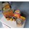 Lot d'anciennes boites de BOUILLON KUB + Plaque vintage. Dimensions plaque : 60X28cm. Dimensions grand cube : 22X22X22cm.