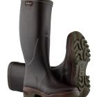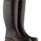 Elle est composée en caoutchouc naturel imperméable d'une belle couleur « bronze », un vert foncé avec des reflets métalliques. La botte est d'une bonne taille. Elle s’enfile sans difficulté. Elle devient plus délicate à ôter si l’on possède des mollets forts mais pas de crainte il existe un modèle similaire à soufflets ! Toutefois on est bien maintenu dans ce chaussant.