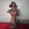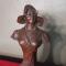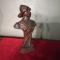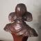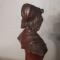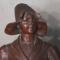 buste en bronze patiné d'une femme souriante au chapeau avec un bateau voilier