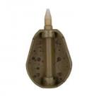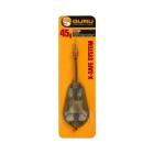 La gamme X Change Feeder de Guru se compose de deux types de cages, chacune en 3 capacités différentes qui sont prévues pour se voir adjoindre une masselotte en différents grammages. On retrouve une cage ouverte avec un grillage plastique pour l'amorce classique en modèle Bait Up et une cage dite Open Ended ouverte sur le haut pour les pêches profondes ou les esches animales. Le système de fixation de la masselotte positionnée sur l'avant pour un meilleur aérodynamisme se fait via un verrouillage par quart de tour et permet de passer de 20g à 30, 40 ou 50g en très peu de temps. Cette modularité, outre le gain de temps permettra au pêcheur de s'équiper pour faire face à toutes situations avec moins de feeder dans sa boite. De plus le design de cet équipement a été profilé afin qu'il décolle rapidement du fond lors du ramené, ainsi le risque d'accroc est minimisé. La boucle de fixation de ce feeder est en nylon de 55 centièmes et donnera la souplesse nécessaire au placement optimal lors du lancer pour atteindre de grandes distances.