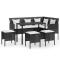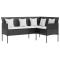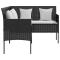 canapés en L 5pcs avec coussins résine tressée noirCet ensemble de canapés élégant et confortable, est un choix idéal pour vous détendre et profiter du beau temps, faire une sieste ou discuter avec votre famille ou vos amis. Construit à partir d'un cadre en acier enduit de poudre résistant, cet ensemble de salon de jardin est stable et durable. Grâce à la résine tressée résistante aux intempéries, l'ensemble de canapés de terrasse est facile à nettoyer et convient à un usage quotidien. De plus, cet ensemble de mobilier d'extérieur peut être facilement déplacé pour s'adapter à n'importe quel décor grâce à sa construction légère. Les coussins bien rembourrés vous offrent également un confort supplémentaire. Remarque : afin de prolonger la durée de vie des meubles d'extérieur, nous vous recommandons de les protéger avec une housse imperméable.