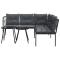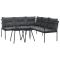 canapés de jardin et coussins noir acier textilèneCet ensemble de canapés de jardin est le complément parfait de votre jardin, terrasse ou patio, offrant un espace confortable et accueillant pour discuter avec la famille et les amis ou simplement se détendre et profiter de l'extérieur. Cadre robuste et stable : le cadre en acier enduit de poudre assure la solidité et la stabilité du meuble de jardin pour une utilisation quotidienne à l'extérieur.Durable et longue durée de vie : le tissu textilène est apprécié pour sa durabilité, résistance à l'eau et à la décoloration, facilité d'entretien et protection contre les rayons UV et la moisissure, ce qui en fait un choix idéal pour le meuble d'extérieur et les structures d'ombrage.Expérience d'assise confortable : ce mobilier d'extérieur, doté de coussins épais, offre une expérience d'assise confortable.Housse amovible et lavable : ces coussins de siège sont dotés de housses amovibles pour un lavage et un entretien faciles.Dessus robuste : le dessus robuste de la table de patio est idéal pour placer vos boissons ou tout autre article dont vous avez besoin à portée de main. Bon à savoir :Pour que vos meubles d'extérieur restent beaux, nous vous recommandons de les protéger avec une housse imperméable. Maximum 110 kg par siège. Soyez conscient du risque de feu ouvert et d'autres sources de forte chaleur à proximité de l'appareil.