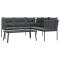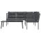 canapés de jardin et coussins noir acier textilèneCet ensemble de canapés de jardin est le complément parfait de votre jardin, terrasse ou patio, offrant un espace confortable et accueillant pour discuter avec la famille et les amis ou simplement se détendre et profiter de l'extérieur. Cadre robuste et stable : le cadre en acier enduit de poudre assure la solidité et la stabilité du meuble de jardin pour une utilisation quotidienne à l'extérieur.Durable et longue durée de vie : le tissu textilène est apprécié pour sa durabilité, résistance à l'eau et à la décoloration, facilité d'entretien et protection contre les rayons UV et la moisissure, ce qui en fait un choix idéal pour le meuble d'extérieur et les structures d'ombrage.Expérience d'assise confortable : ce mobilier d'extérieur, doté de coussins épais, offre une expérience d'assise confortable.Housse amovible et lavable : ces coussins de siège sont dotés de housses amovibles pour un lavage et un entretien faciles.Dessus robuste : le dessus robuste de la table de patio est idéal pour placer vos boissons ou tout autre article dont vous avez besoin à portée de main. Bon à savoir :Pour que vos meubles d'extérieur restent beaux, nous vous recommandons de les protéger avec une housse imperméable. Maximum 110 kg par siège.