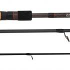 On retrouve un porte moulinet avec un poignée comportant du liège et des bagues de serrage du pied du moulinet avec finition carbone. Le liège apporte un charme ancien et une très bonne prise en main, quelques que soient les conditions météo. Le serrage du moulinet est fiable. Le talon de la canne est confectionné en mousse EVA haute densité afin d'encaisser les chocs lorsque l'on pose la canne à la verticale notamment. Le blank en carbone haut module est donc bien protégé. L'action de ces cannes est progressive, elles sont plutôt destinées à la pêche avec des cuillers tournantes. Ce sont de très bonnes lanceuses ! Ces trois modèles confectionnés en deux brins mesurent 160, 180 et 210 cm pour des puissances respectives de 1,5-7 ; 1,5-7 et 3-12 g et des poids de 86 ; 90 et 105 g.