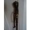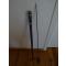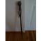 le fût de la canne est en bois entourée d'une cordelette avec des anneaux métalliques et un pied en cuivre