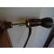 Le pommeau est en bois décoré de motifs en laiton avec un lacet de cuir