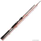 Le blank de cette canne Tenryu a été choisi avec soin afin de pouvoir pêcher avec des leurres assez lourds, aux alentours de 70 g, de type swimbaits et Spinnerbaits. Le carbone utilisé encaisse bien les vibrations et possède suffisamment de souplesse pour lancer sans effort et à bonne distance ces leurres volumineux ou alors au contraire à courte distance mais très précisément. Cette canne sera une alliée de taille pour la recherche des poissons trophées dans des secteurs encombrés et pourra extraire d'autorité des gros carnassiers de zone de bois morts et d'herbiers ! Elle mesure 216 cm, mono brin et comporte neuf anneaux bien disposés sur le blank rouge. La puissance est donnée pour des leurres de 30 à 80 g et pour des corps de ligne de 15 à 30 lbs. Cette canne casting pèse 160 g, un fleuret très puissant !