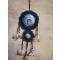 Capteur de rêves 2 cercles avec fourrure, dont 1 grand cercle de 16 cm avec une image tête de bison et des perles argentées autour, et 1 cercle de 9 cm avec une perle bleu turquoise.