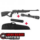 Le boitier est équipé d'un rail de 11 mm. Cette carabine 22 LR Equality Maker Silencieuse de BO Manufacture est vendue seule ou en pack avec une petite lunette de tir de loisir.