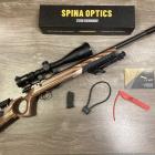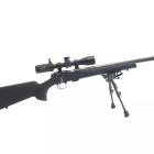 Le canon de cette carabine de type Varmint est forgé à froid et mesure 20'' soit 50,8 cm. Il est cannelé sur toute sa longueur. Il est terminé par un filetage au pas de 1/2x20 à la bouche et il est équipé d'un petit frein de bouche. La chambre de type Match est usinée avec des côtes très précises pour optimiser la régularité des tirs. Le levier de culasse est très proéminent. C'est une bille de caoutchouc qui offre une prise en main remarquable.