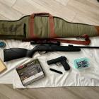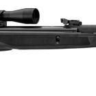 Gamo nous livre cette année encore de bien belles nouveautés en carabines à air comprimé. L'espagnol s'appuie sur ses technologies propres et ses recherches pour développer des carabines toujours plus agréables à utiliser en loisir. Cette carabine à canon basculant Black Bear de Gamo possède un canon de calibre 4,5 mm assez long et manchonné de polymère afin d'améliorer la prise en main lors des opérations de rechargement de l'arme. Un frein de bouche est fixé à la bouche du canon. Les organes de visée fixe sont composés d'une hausse réglable en hauteur et dérive avec fibre optique lumineuse verte et d'un guidon également bien visible de couleur orange. Une lunette de grossissement 4 et de diamètre d'objectif de 32 mm est également fournie avec l'arme. Elle permettra des tirs plus précis au-delà de 10 mètres. La carabine est donnée pour une puissance de 19,9 joules et la vitesse des diabolos indiquée par le fabricant est de 280 m/s.