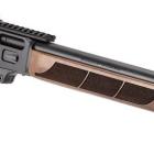 La crosse droite synthétique noire et d’aspect rugueux propose un excellent grip, notamment au niveau de la poignée de crosse et du devant où des bandes rugueuses assurent une bonne prise en main quelles que soient les conditions météorologiques. La crosse est pourvue de portes grenadières pour mettre une bretelle, mais surtout d’inserts M-LOCK à l’extrémité du devant.