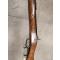 carabine à poudre noire à chargement par la bouche, de type percussion, avec baguette sous le canon et garnitures métalliques simples.
