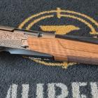 Luxueuse, sans trop d’ostentation toutefois, le modèle Automn porte bien son puisque son boitier est paré de belles gravures où chatoient de subtiles touches dorées et cuivrées, retouchée à la main par Giovanelli. Des feuilles mordorées qui semblent tomber sur une forêt d’argent et les veines noires d’épineux, contrastent avec la hure d’un grand sanglier sur le flanc droit, tandis que sur le flanc gauche une bête de compagnie saute un layon imaginaire… De quoi rêver, rien qu’en observant cette arme.