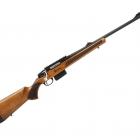 C'est une crosse à trou de pouce en noyer poncé et huilé qui équipe cette carabine de chasse chambrée en calibre 308 Winchester.